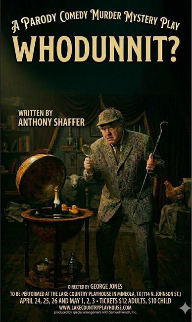 The Historic Select Theater and Lake Country Playhouse will preset “Whodunnit?”, a side-splitting murder mystery parody full of plot twists and humor. It was written by Anthony Shaffer, the playwright famous for “Sleuth”, among others.